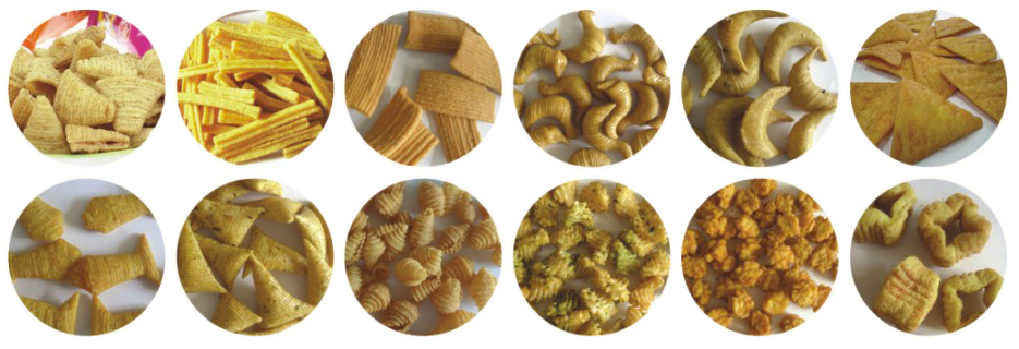 5.生產流程:原料混合→擠壓膨化→整形切斷(duàn)→油炸→甩油→調味→包裝(zhuāng)(設備配(pèi)置靈活(huó))