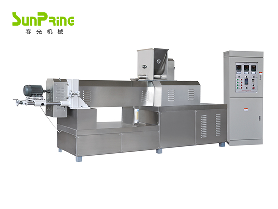 糧食是人類獲取營養的主要來源之一,但是一般穀物的營養元素含量各不相同.由於(yú)穀物在加工過程(chéng)中(zhōng)損(sǔn)失大量蛋白質和微量元素,使(shǐ)營養成分大大降低,人造(zào)大米(仿真食品)技術是擠壓原理在糧食再生利用方麵的突破.該技術最大特(tè)點是將人(rén)體所必需的各種營養素添加到食品中,生產出各種保健食品,療效食品(pǐn)和功能食品.產品食(shí)用方便,易於消化吸收,深受(shòu)消費者歡迎.